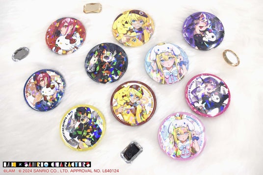直径6.5cmの缶バッジは、光を当てるとキラキラときらめくホログラム仕様♪ キャラクターたちがアップめに描かれているため、仕草や表情がよく見えます! バージョン違いで全種類集めたくなる可愛さです。