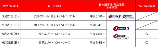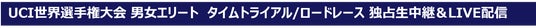 UCI世界選手権をお楽しみいただくため、女子エリートロードレースは1時間、男子エリートロードレースは2時間まで番組開始からYouTubeで無料ライブ配信します。