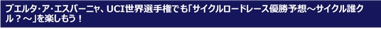 「サイクル誰クル?」を、ブエルタ・ア・エスパーニャ、UCI世界選手権男子エリートでも開催します。