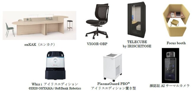 また、従業員が安心して働ける環境を整備するため、空間だけでなく物体表面の菌やウイルスを抑制する感染症を予防する大規模空気清浄化の技術を搭載したPlasmaGuard PRO™ アイリスエディション置き型や床面の細菌や花粉・PM2.5などを減少させるWhiz i アイリスエディション(※6)を導入しています。また、従業員はガラスパーテーション採用のオープンオフィスやオフィス緑化など生命・自然を感じられる環境を取り入れたバイオフィリックデザインでリラックス効果が期待でき、快適に業務することで、従業員の心身の健康に配慮した「Well-being」を同時に実現しています。