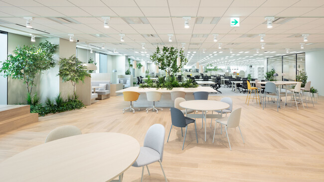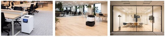 安心して従業員が働ける環境を整えるため、空間だけでなく物体表面の菌やウイルスを抑制し、感染症を予防する「PlasmaGuard PRO™ アイリスエディション」や床面の細菌や花粉・PM2.5などを減少させる「Whiz i アイリスエディション(※6)」を配置しています。また、ガラスパーテーションを活用したオープンオフィスやオフィス緑化など生命・自然を感じられる環境を取り入れたバイオフィリックデザインでリラックス効果が期待でき、快適に業務することで心身の健康にも配慮した「Well-being」を同時に実現しています。