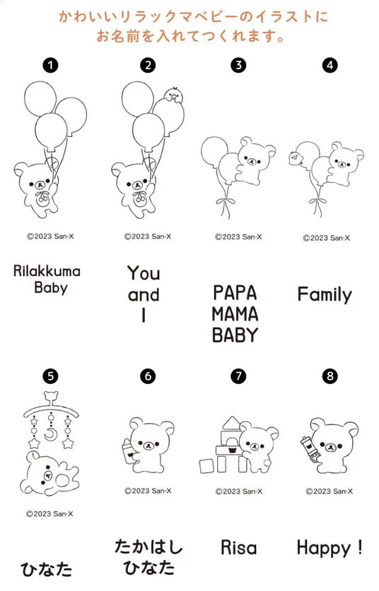 リラックマとコリラックマ、キイロイトリetc。かわいい「リラックマベビー」のイラスト入り。名前を入れたりメッセージを入れたり、好きな文字を入れて、じぶんだけのマイボトルにカスタマイズできます。