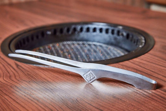 牛角ならではの工夫を凝らした「牛角トング」は、焼肉店としての使いやすさを追求したオリジナル品です。肉を挟む部分がテーブルに触れない構造で、衛生面にも配慮。独自の“くびれ形状”により、食材をしっかりと掴みやすいのが特長です。軽い力で開閉できる設計のため、焼肉はもちろん、盛り付けなどの細かな作業にも使いやすい一本です。