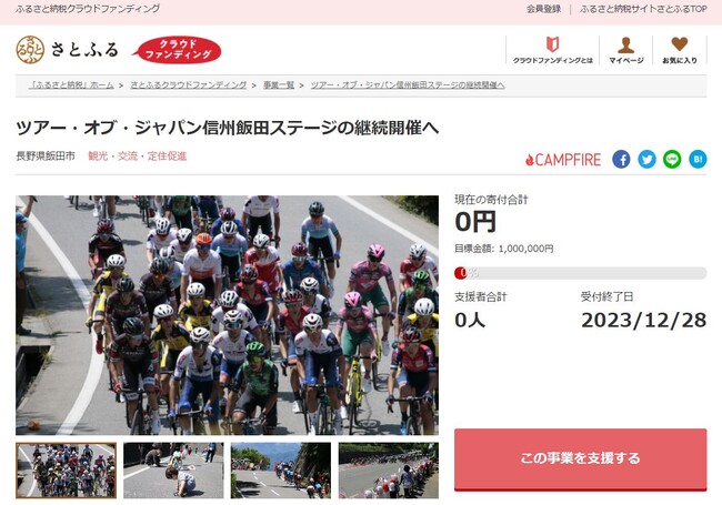 この「ツアー・オブ・ジャパン信州飯田ステージ」を、今後も継続していくために、当プロジェクトへの温かいご支援をよろしくお願いいたします。