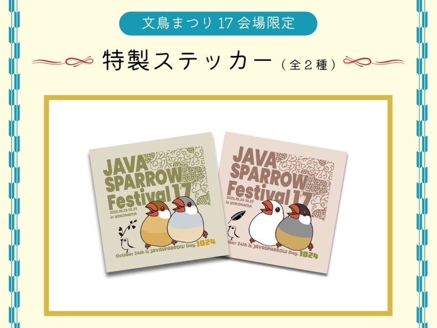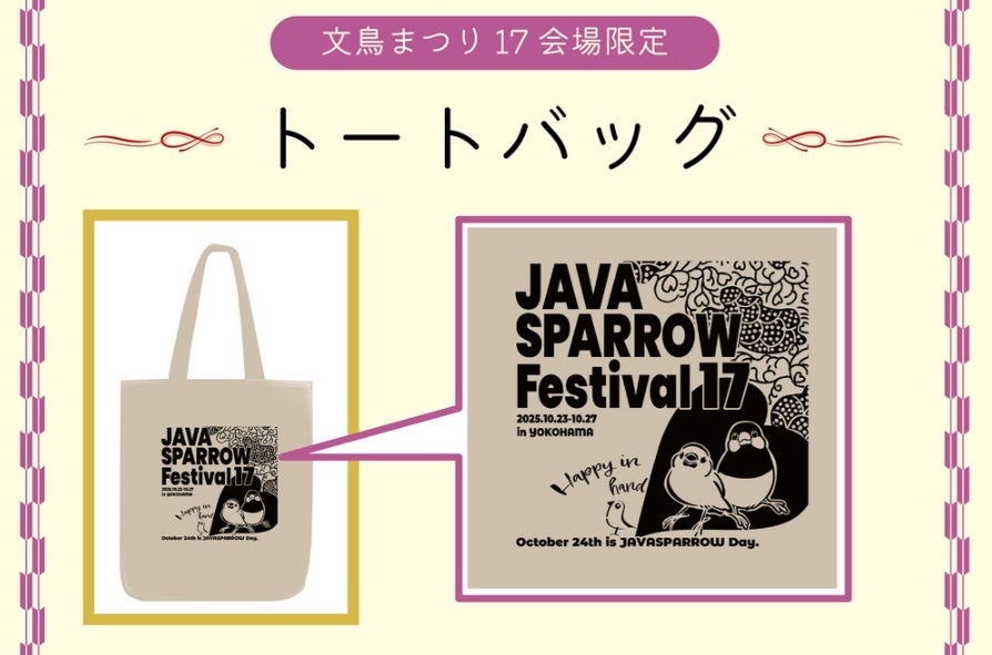 株式会社ハンズ(本社:東京都新宿区)は、10月23日(木)から10月27日(月)の5日間に、ハンズ横浜店にて「文鳥まつり17 in YOKOHAMA」を開催いたします。例年好評をいただいている文鳥まつりですが、今年は昨年よりもさらに規模を拡大して開催。文鳥モチーフのグッズの販売はもちろん、縁日や占いまで。文鳥の魅力をたっぷりとお楽しみいただける場を提供してまいります。