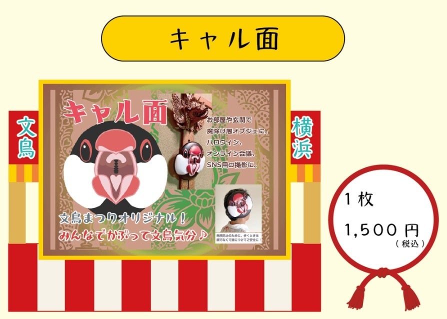 ■ 「縁日こぉなぁ」で出店を楽しむ会場内には文鳥をモチーフにしたお面の販売やくじ引き、缶バッジ釣りといったミニゲームを楽しめる縁日も。購入、ご参加いただいたお客様にはご来場記念のステッカーをプレゼントいたします。