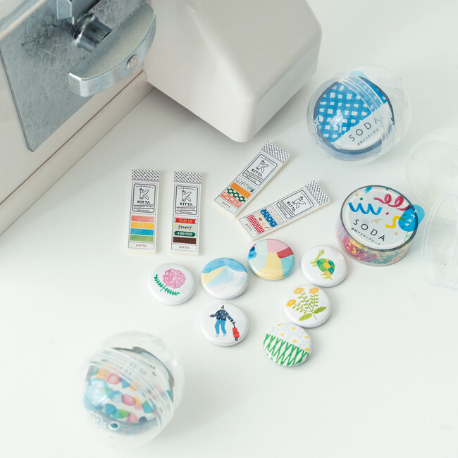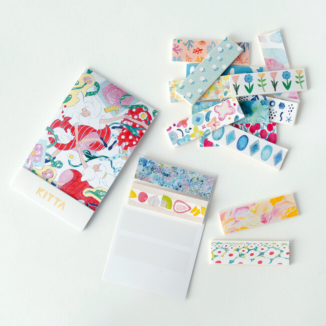 約50種類からお好きな4つのマスキングテープを選んで台紙に貼りつけ、自分だけの「KITTA」を作れます。表紙には本イベントのメインビジュアルがデザインされています。
