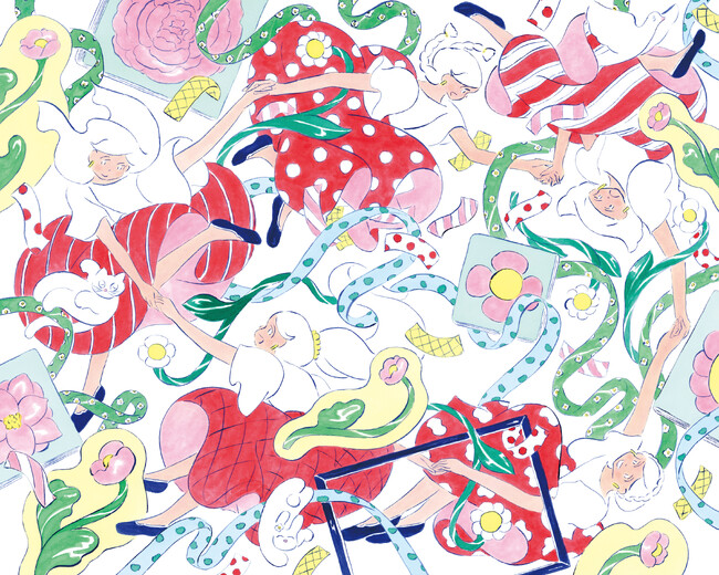 イベントのメインビジュアルは、これまでのものづくりでもご一緒させていただいた、イラストレーターの北澤平祐さんに制作いただきました。女の子たちが手をつなぎ、楽しそうにふわりと舞う様子は今回のイベントのテーマである“つながり”を表現しています。北澤さんは本イベントにもお越しいただける予定です。
