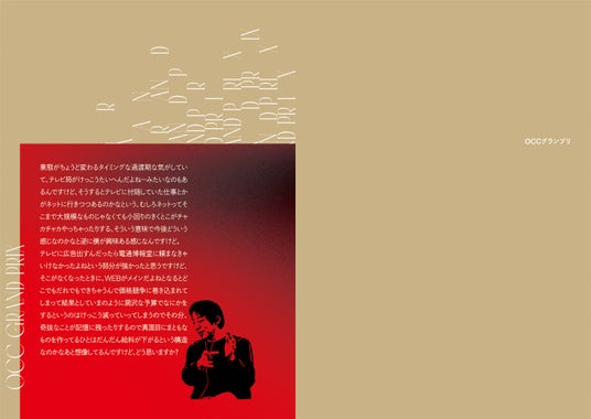 今年のOCC年鑑は、「審査を審査する」企画第二弾として、ひろゆきさんにOCCを外からの視点で審査していただきました。OCC賞の受賞作品のほかにも、広告・クリエイティブの未来についてひろゆきさんならではの言葉えらびでコメントされています。
