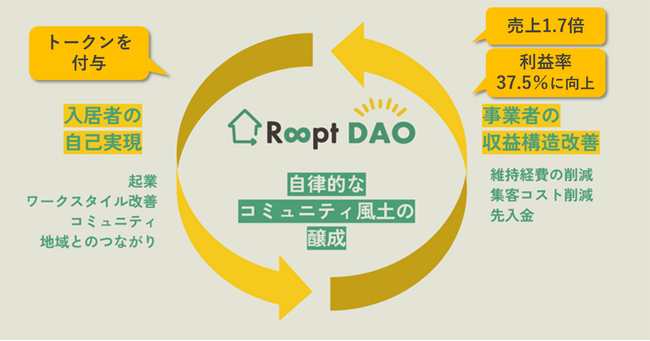 取り組みにより、Roopt DAOは、DAO導入前と比較して、「高い入居率」および「集客・維持管理コストの低減」を実現し、物件の魅力と収益性の双方を大きく向上しています。詳細は、報道発表「開業から 1 年で売上 1.7 倍&利益率の大幅改善を達成 」( https://www.gaiax.co.jp/pr/press-10112023/ )をご覧ください。