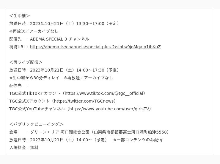 ■TGC フェス 山梨初!ABEMAでの無料生中継が決定!