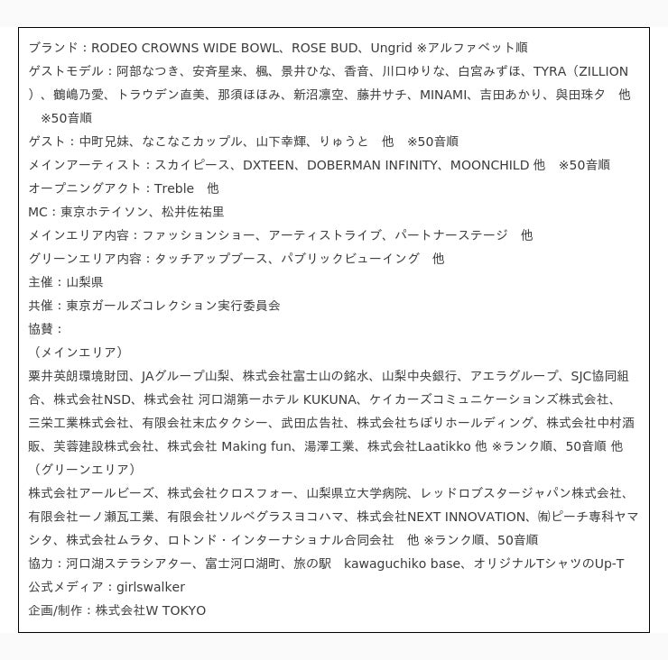 公式サイト:https://tgc.girlswalker.com/fes/yamanashi/2023/
