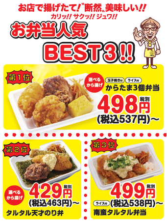 ・からたま3個弁当 498円(税込537円~)