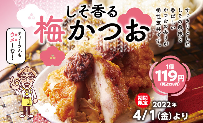 揚げたてから揚げとテリー伊藤こだわりの玉子焼き「から揚げの天才」は、デカから「梅かつお」を4月1日(金)より期間限定で販売開始します。