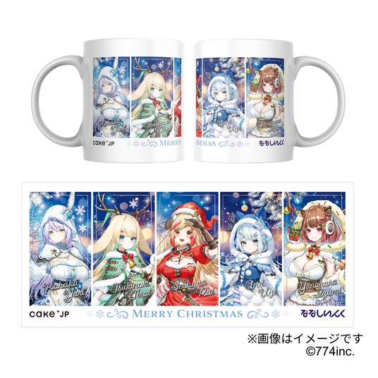 今回コラボするタレントは杏戸ゆげ、柚原いづみ、瀬島るい、月野木ちろる、瑚白ユリの5人です。スイーツやグッズに使用しているイラストは、このコラボのために特別に描き起こしたクリスマス衣装をまとっており、ここでしか手に入らないデザインです。