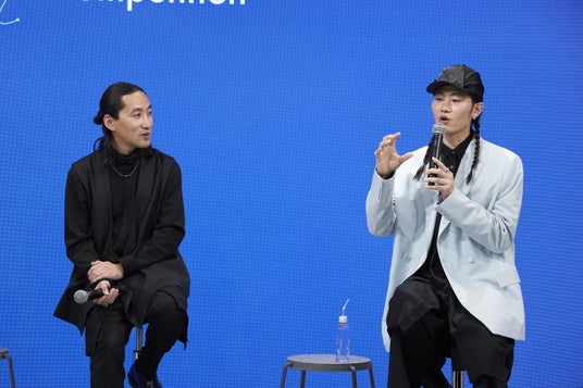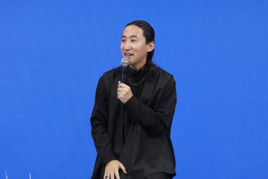 「KAI Hat & Head-piece Competition 2024 最優秀賞授賞式」のイベント後半で、株式会社ユナイテッドアローズ 上級顧問クリエイティブディレクション担当の栗野宏文さん、ファッションデザイナー中里唯馬さんをゲストにお迎えし、「KAI Hat & Head-piece Competition 2024」の審査員でフランス国家最優秀職人章の称号をもつHat & Head-piece designer日爪ノブキさんの3名で対談形式のトークショーを行いました。