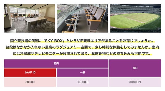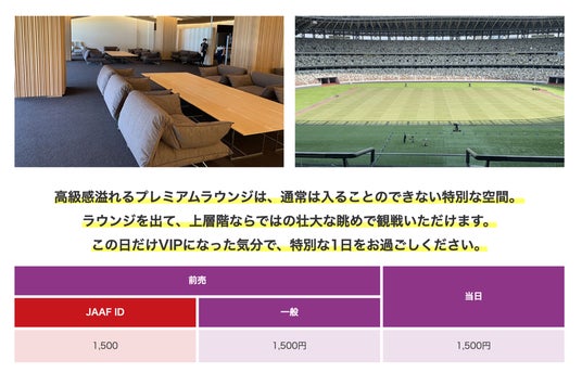 今回は国立競技場を体感していただくため、入場チケットまたはADカードをお持ちの方が追加で購入できるオプションチケットを特別価格でご案内いたします!