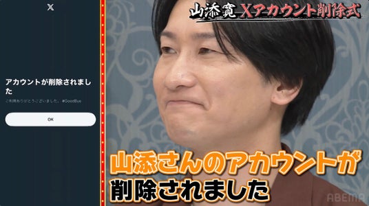 「Xアカウント削除式」にはゲストにフリーアナウンサー・松丸友紀さんを迎え、山添さんと同期のお笑いトリオ・ネルソンズの青山フォール勝ちさんと岸健之助さん、芸人で地元の後輩でもあるお笑いコンビ・ミキの亜生さんも参加し、2010年の初投稿から山添さんとXのあゆみを振り返るほか、Xをやってきて良かった思い出や、過去に山添さんに寄せられた“クソリプ”を一挙紹介。山添さんが14年間お世話になったXに最後のつぶやきを投稿するまでの一部始終をお送りしました。