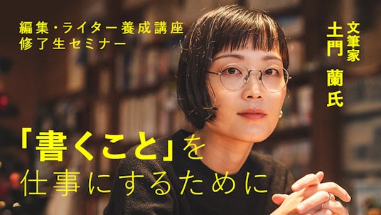 【5月31日(土)10:00~】「書く」ことを仕事にするために編集・ライター養成講座の修了生でもある、文筆家の土門蘭氏に、独り立ちまでの間に苦労されたこと、どうしたら仕事が獲れるようになったのか、これから書く仕事を目指す方にオススメしたいことなどをお話しいただきます。