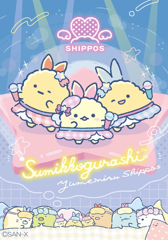 すみっコぐらしのキャラクターでたべもののアイドルを夢みる「えびてんのしっぽ」が、「えびふらいのしっぽ」、「あじふらいのしっぽ」で結成された「しっぽず」をテーマにしたフードはもちろん、「しっぽず」を応援するすみっコたちをイメージしたサンデーやドリンクもご用意しています。ここでしか手に入らない新アート「夢みるしっぽず」のイラストを使ったオリジナルグッズや注文特典も登場します。