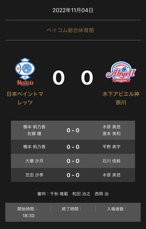 ノジマTリーグ 2022-2023シーズン 公式戦 11月04日開催 ベイコム総合体育館(兵庫県) 日本ペイントマレッツ vs 木下アビエル神奈川 対戦オーダーが発表されました。
