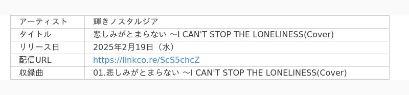 2ndシングル『悲しみがとまらない ~I CAN'T STOP THE LONELINESS』(Cover)