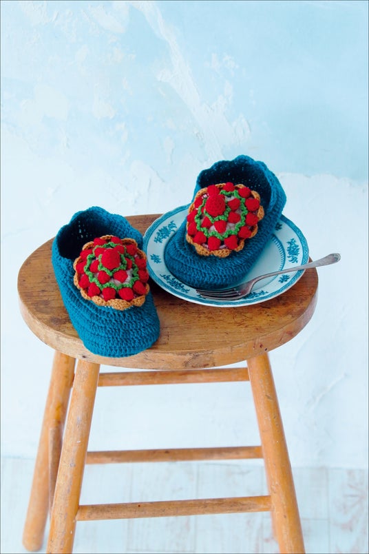 コサージュルームシューズ、玉編みルームシューズ、玉編みのカフつきルームシューズ、リブ編みルームシューズ、Boy & Girlシューズ(大人・子ども用)、くまのルームシューズ(大人用)、うさぎのルームシューズ(子ども用)、タルトのルームシューズ
