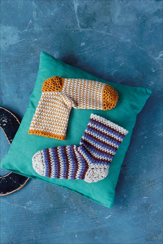 上)こま編みボーダーソックス 下)ジグザグボーダーソックス