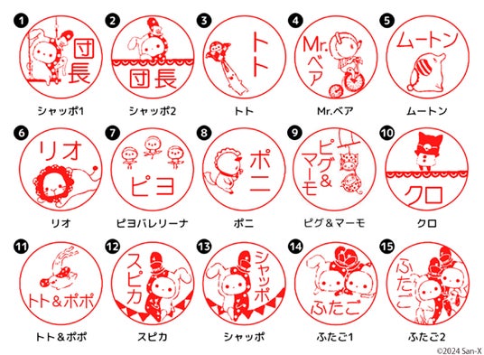 捨てられていたぬいぐるみの「シャッポ」と、街角や部屋の片隅に忘れられたぬいぐるみたちが、夜にこっそり抜け出して結成した秘密のサーカス団の仲間たちを描いたはんこ「センチメンタルサーカス はんこコレクション」。可愛さの中にどこか哀愁を感じさせるサーカス団のみんなを描いたハンコは、つい何度でも押したくなることでしょう。