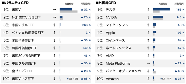 GMOインターネットグループのGMOフィナンシャルホールディングス株式会社の連結会社で、金融商品取引業を営むGMOクリック証券株式会社(本社:東京都渋谷区、代表取締役社長:高島 秀行、以下:当社)は、2023年6月の当社CFD売買代金ランキングを発表いたします。
