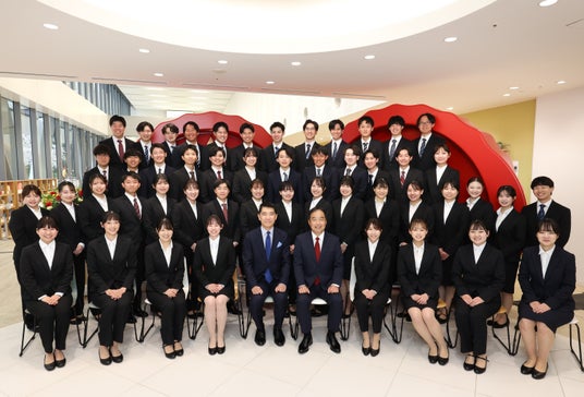キユーピー株式会社(本社:東京都渋谷区、代表取締役 社長執行役員:高宮 満、以下キユーピー)は、2025年度総合職採用の新入社員49名を対象とした入社式を2025年4月1日(火)に仙川キユーポート※1内のマヨテラス※2(東京都調布市)で実施しました。続いて、入社式後には、キユーピー マヨネーズ発売100周年の節目の企画として、キユーピーと一部のグループ会社の新入社員133名を対象とした「グループ合同入社イベント」を仙川キユーポートの従業員食堂で実施しました。入社式当日に、キユーピーとグループ会社の新入社員を対象にした「合同入社イベント」を行うのはグループ初の試みです。