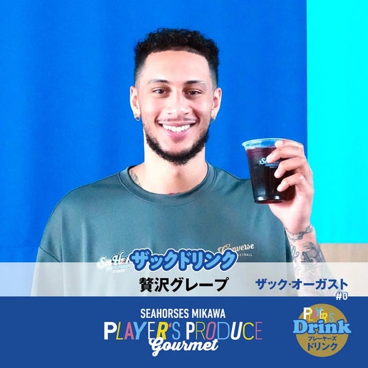 ザックドリンク(贅沢グレープ)グレープ好きの#0 ザック・オーガスト選手お勧め!数種類の中から厳選した酸味と甘さのバランスが良いグレープジュース。