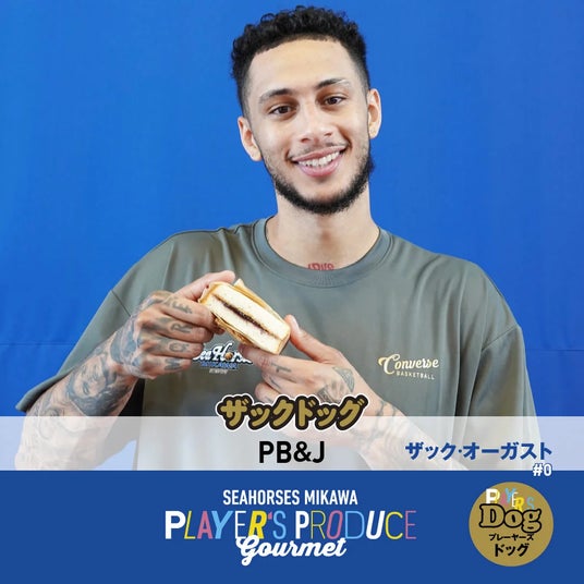 ザックドッグ(PB&J)アメリカの定番サンドウィッチ!ピーナッツバターの塩気と日本では珍しいグレープジャムの甘さが絶妙にマッチ!#0 ザック・オーガスト選手もハイタッチしたくなるほどの美味しさ。