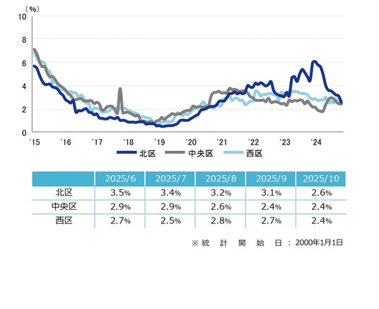 空室率 4ヵ月連続で低下 「北区」は2022年1月以来の2%台