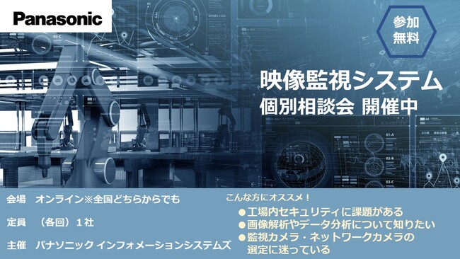 パナソニック インフォメーションシステムズ株式会社は、 2023年7月5日(水)から2023年9月20日(水)にかけて各回1社限定の、映像監視システム個別相談会を実施します。