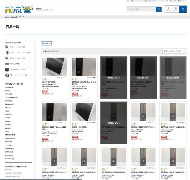 中古PC販売サイト「PCバル」では、液晶一体型もある富士通 中古ESPRIMOCシリーズを19,800円からラインアップして、12月21日よりセール価格で開始しました。