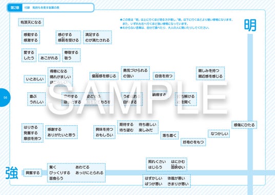 そのほか、文を書くときや読み取りに役立つ、「気持ちを表す言葉」の表もついています。