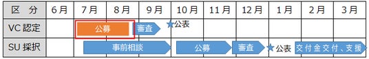 SUの公募に先立ち、7月8日(火)から8月15日(金)まで、認定VCの公募を行います。また、7月16日(水)にはVC向けの説明会を開催します。