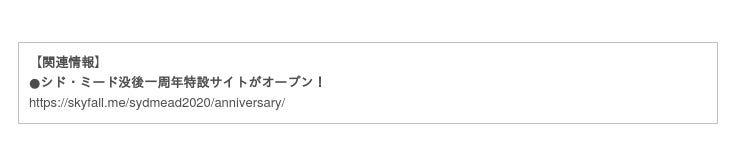 映画「トロン」と「ブレードランナー」を同時に手掛け話題となりその後、一流映画監督らがこぞってデザインを依頼するハリウッドデザイン界のステイタスシンボルとなる。’81年より深い関わりをもった日本では、のべ120ものプロジェクトに携わり、その生涯で手掛けた総数2600個目をカウントした昨春の「シド・ミード展PROGRESSIONS TYO 2019」を集大成として見届け、昨年12月30日に逝去。