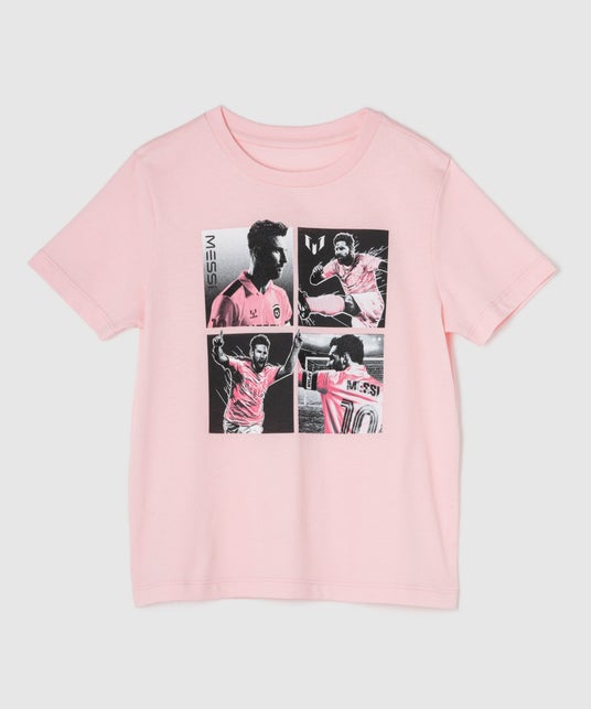 メッシが現在所属する「インテル・マイアミCF」ホームユニホームのカラーをアクセントにした4種類のTシャツが登場