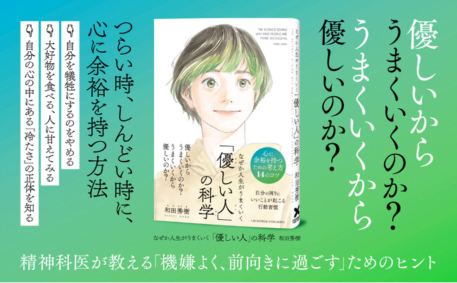 本書は精神科医が、「優しい人はなぜ人生がうまくいくのか」を科学的に解説し、「心に余裕を持つための考え方」を紹介します。人に優しくなるための「心の持ち方」や今から実践できる「人に優しくなる行動習慣」が紹介されているので、対人関係でストレスを抱えがちな毎日に、「優しさ」から好循環をもたらすことができる実用的な1冊です。