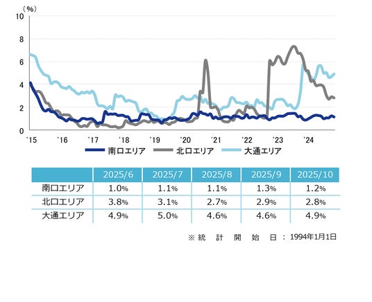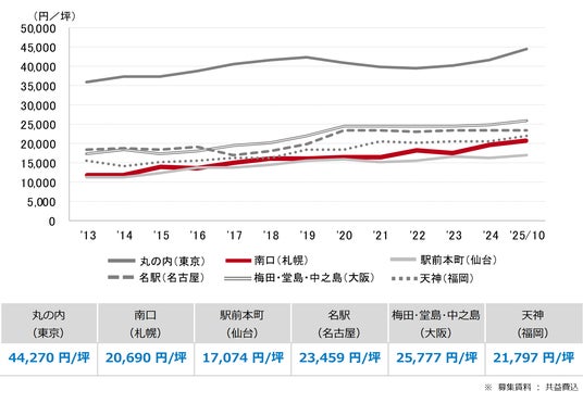 三幸エステート株式会社(本社:東京都中央区、取締役社長:福島正二郎)は、2025年10月度の札幌市オフィス賃貸状況(空室率&現空面積:全規模、募集賃料&募集面積:全規模、規模別空室率、主要エリア※1空室率:全規模)および全国6大都市(東京・札幌・仙台・名古屋・大阪・福岡)の大規模ビルのマーケットデータをまとめた「オフィスマーケット2025年11月号札幌」を公表します。