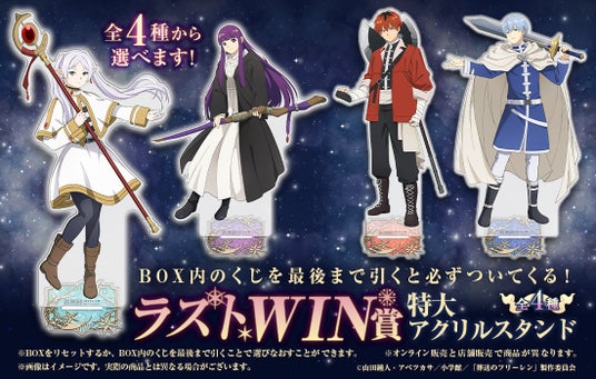 フリーレン・フェルン・シュタルク・ヒンメルの描き下ろしイラストを楽しめるグッズや、可愛い描き起こしミニキャラクターを使用したグッズなど、豪華賞品のラインナップとなっております。