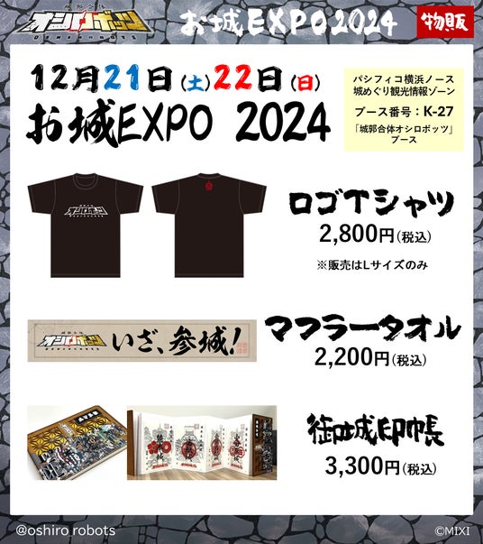 株式会社MIXI(東京都渋谷区、代表取締役社長 上級執行役員 CEO:木村 弘毅)は、MIXI_ANIMEオリジナルコンテンツ『城郭合体オシロボッツ』が2024年12月21日(土)~22日(日)には、パシフィコ横浜で開催される「お城EXPO 2024」に出展し、計15城のオシロボットの物販やトレーディングカード配布、ノベルティ配布を行います。