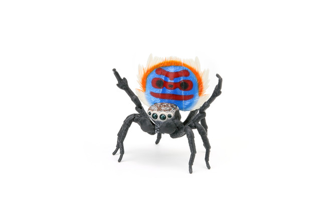 命がけの求愛ダンスをする世界で一番美しいクモ、ピーコックスパイダーの生態を徹底研究し2000%サイズでフィギュア化!