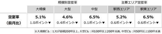 空室率 前月から大幅な低下 「大規模」は1.0ポイントの低下