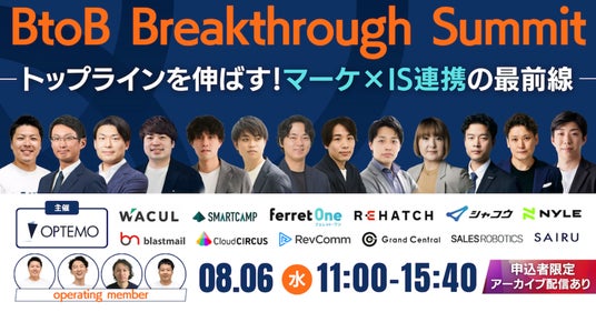 BtoBマーケティングのお困りごとをまるっと解決するサービス『ferret One(フェレットワン)』を運営する株式会社ベーシック(本社:東京都千代田区、代表取締役:秋山勝)は、8/6(水)に株式会社OPTEMO(所在地:東京都千代田区、代表取締役CEO:小池桃太郎)が主催するカンファレンス「BtoB Breakthrough Summit」に登壇いたします。