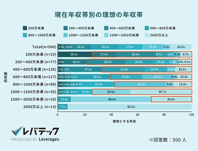 副業を行うIT人材の理想の年収について、「600万以上800万未満(20.2%)」と回答した方が最多となりました。現年収との比較では、ほとんどの年収帯において、半数以上の方が現在よりも年収を上げていきたいと考えていることがわかります。現在よりも年収を上げる目的で副業に取り組むIT人材も多いといえそうです。