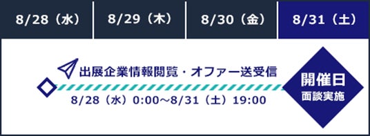 ※出展企業情報の閲覧・カジュアル面談オファーの送受信:8/28(水)~8/31(土)