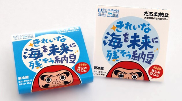 今年度初めて茨城県において海洋ごみ削減を目的に活動をスタートさせたCHANGE FOR THE BLUE いばらき実行委員会は、縁起物の「だるま」に海洋ごみゼロを祈願する意味合いを込めて、だるま食品株式会社の「だるま納豆」とのコラボ商品を企画・販売。大洗まいわい市場での店頭販売をはじめ、まいわい市場およびだるま食品のオンラインストアでも販売します。
